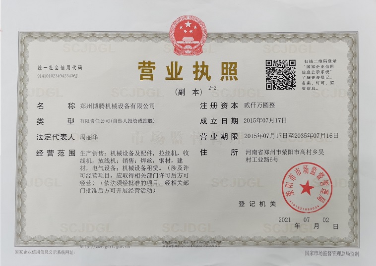 鄭州博騰機(jī)械設(shè)備有限公司是一家從事金屬制品拉拔設(shè)備、電控設(shè)備及其輔機(jī)的研發(fā)、設(shè)計(jì)及制造于一體的綜合型企業(yè),我公司擁有一批經(jīng)驗(yàn)豐富的專業(yè)技術(shù)人才和優(yōu)秀的生產(chǎn)管理人才,公司生產(chǎn)設(shè)備齊全,檢測手段完善。